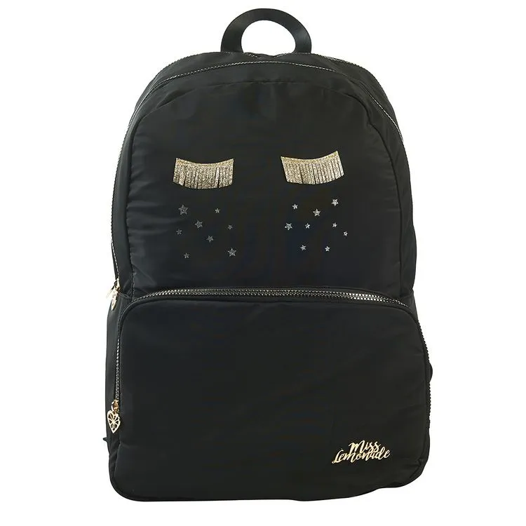 Smiley Sac à Dos 2 Compartiments Noir MISS LEMONADE